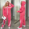 Довжина штанів : 107 см. Штани з високою посадкою , пояс на гумці , бічні кишені . Кофта прямого покрою на манжеті , на блискавці , з капюшоном , кишеня кенгуру .