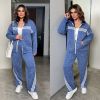 Довжина штанів : 107 см. Штани з високою посадкою , пояс на гумці , бічні кишені . Кофта прямого покрою на манжеті , на блискавці , з капюшоном , кишеня кенгуру .