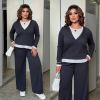 Довжина штанів : 110 см Штани з високою посадкою , пояс на гумці . Кофта прямого покрою , імітація двійки .