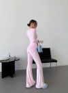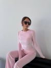 Цей костюм стане твоїм улюбленим для щоденних виходів чи стильного відпочинку. Верх із довгим рукавом ідеально підкреслює силует, а штани-кльош додають витонченості та візуально подовжують ноги. Матеріал ніжний, дихаючий, не втрачає форму та виглядає дорого.