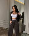 Дуже практичний костюм з кофти, штанів та топу - ідеально до будь-якого сезону. Приємна мʼяка тканина. Кофта на змійці та з капюшоном. Штани на резинці та мають кармани. Топ на бретелях, тягнеться по фігурі.