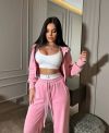 Дуже практичний костюм з кофти, штанів та топу - ідеально до будь-якого сезону. Приємна мʼяка тканина. Кофта на змійці та з капюшоном. Штани на резинці та мають кармани. Топ на бретелях, тягнеться по фігурі.