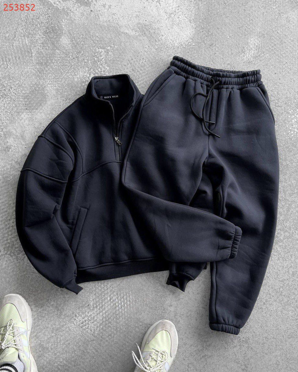 Чоловічий костюм з трьох нитки – це втілення комфорту і стилю в повсякденному одязі. М'яка тканина дбайливо зберігає тепло, дозволяючи шкірі дихати, а сучасний крій підкреслює мужність і свободу рухів. Костюм ідеально підходить як для прогулянок у прохолодну погоду, так і для домашнього затишку. Лаконічний дизайн робить його універсальним рішенням: він однаково органічно виглядає і в розслабленому, і в більш активному образі