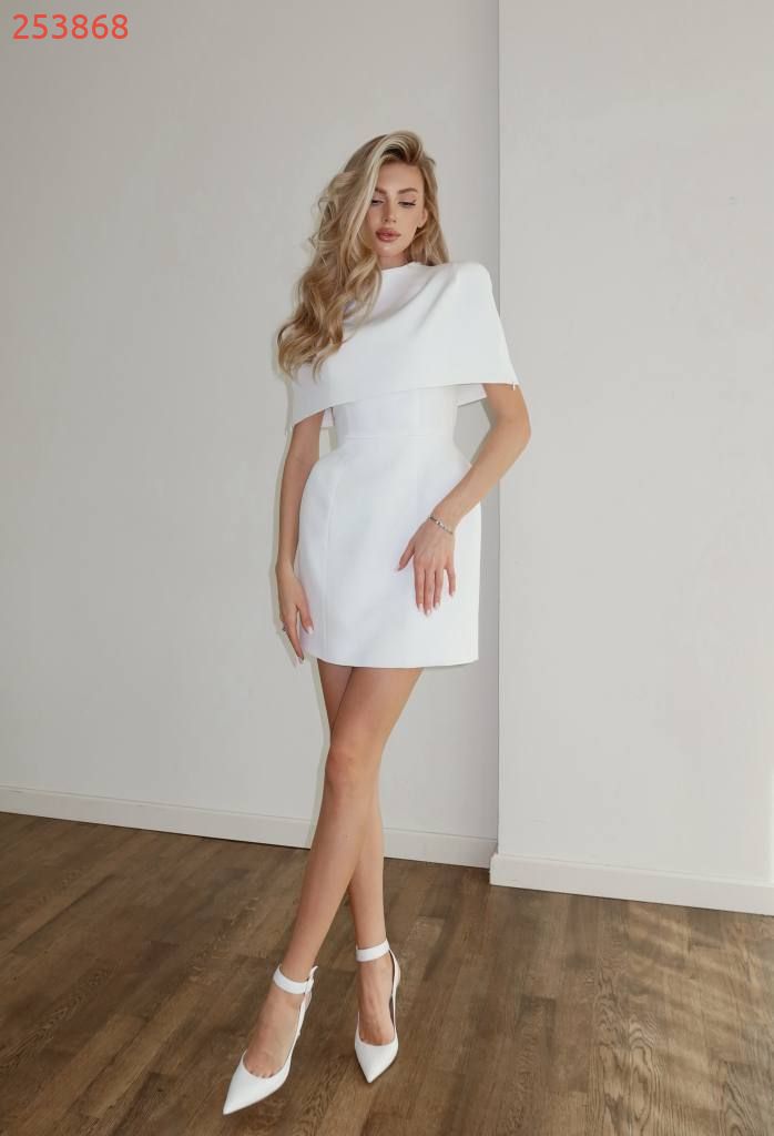 Лаконічна сукня в комплекті з накидкою-кейпом створює витончений та статусний образ.