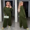 Довжина штанів : 107 см. Штани з високою посадкою , пояс на гумці , бічні кишені . Кофта прямого покрою на манжеті , з V- подібним вирізом .