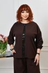 Туніка прямого вільного силуету (на фігурі повинна бути вільною, така модель). Виріз горловини круглий, довгий рукав на манжеті. Попереду декорована якісною стрічкою із пайєтками. Кишень та застібок немає.