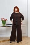 Брюки палацо, посадка вища за середню, по талії зібрані на резинку. В бічних швах оброблені кишені.
