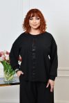 Туніка прямого вільного силуету (на фігурі повинна бути вільною, така модель). Виріз горловини круглий, довгий рукав на манжеті. Попереду декорована якісною стрічкою із пайєтками. Кишень та застібок немає.