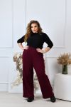 Стильні прямі широкі брюки-палаццо виготовлені з якісного трикотажу тринитка з начосом, що забезпечує середню розтяжність матеріалу та комфорт під час носіння. Ці брюки мають посадку, яка розташована трохи вище середньої, завдяки чому вони стильно підкреслюють талію, а еластична резинка по талії додає зручності і дозволяє прекрасно підлаштуватися під фігуру. В бокових швах розташовані практичні кишені, які не тільки доповнюють дизайн виробу, але й додають функціональності й зручності в повсякденному використанні.