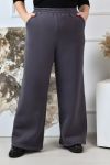 Стильні прямі широкі брюки-палаццо виготовлені з якісного трикотажу тринитка з начосом, що забезпечує середню розтяжність матеріалу та комфорт під час носіння. Ці брюки мають посадку, яка розташована трохи вище середньої, завдяки чому вони стильно підкреслюють талію, а еластична резинка по талії додає зручності і дозволяє прекрасно підлаштуватися під фігуру. В бокових швах розташовані практичні кишені, які не тільки доповнюють дизайн виробу, але й додають функціональності й зручності в повсякденному використанні.
