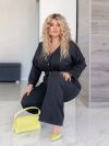 Стильний комплект для прогулянок.Ідеально лягає по фігурі,створюючи благородний силует.Костюм у якому ти виглядаєш стильно,дорого.Рукав укорочений,стильна пряжка на поясі.