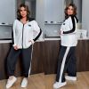 Довжина штанів : 106 см Штани з високою посадкою , пояс на гумці , бічні ломпаси , бічні кишені , низ на фіксаторі . Кофта прямого покрою , на блискавці , з капюшоном , рукав з ломпасом .