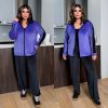 Довжина штанів : 106 см Штани з високою посадкою , пояс на гумці , бічні ломпаси , бічні кишені , низ на фіксаторі . Кофта прямого покрою , на блискавці , з капюшоном , рукав з ломпасом .