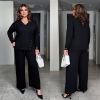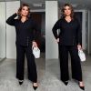 Довжина штанів : 107 см. Штани з високою посадкою , пояс на гумці , бічні кишені . Кофта прямого покрою з розрізом , з V- подібним вирізом .