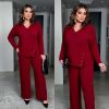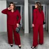Довжина штанів : 107 см. Штани з високою посадкою , пояс на гумці , бічні кишені . Кофта прямого покрою з розрізом , з V- подібним вирізом .