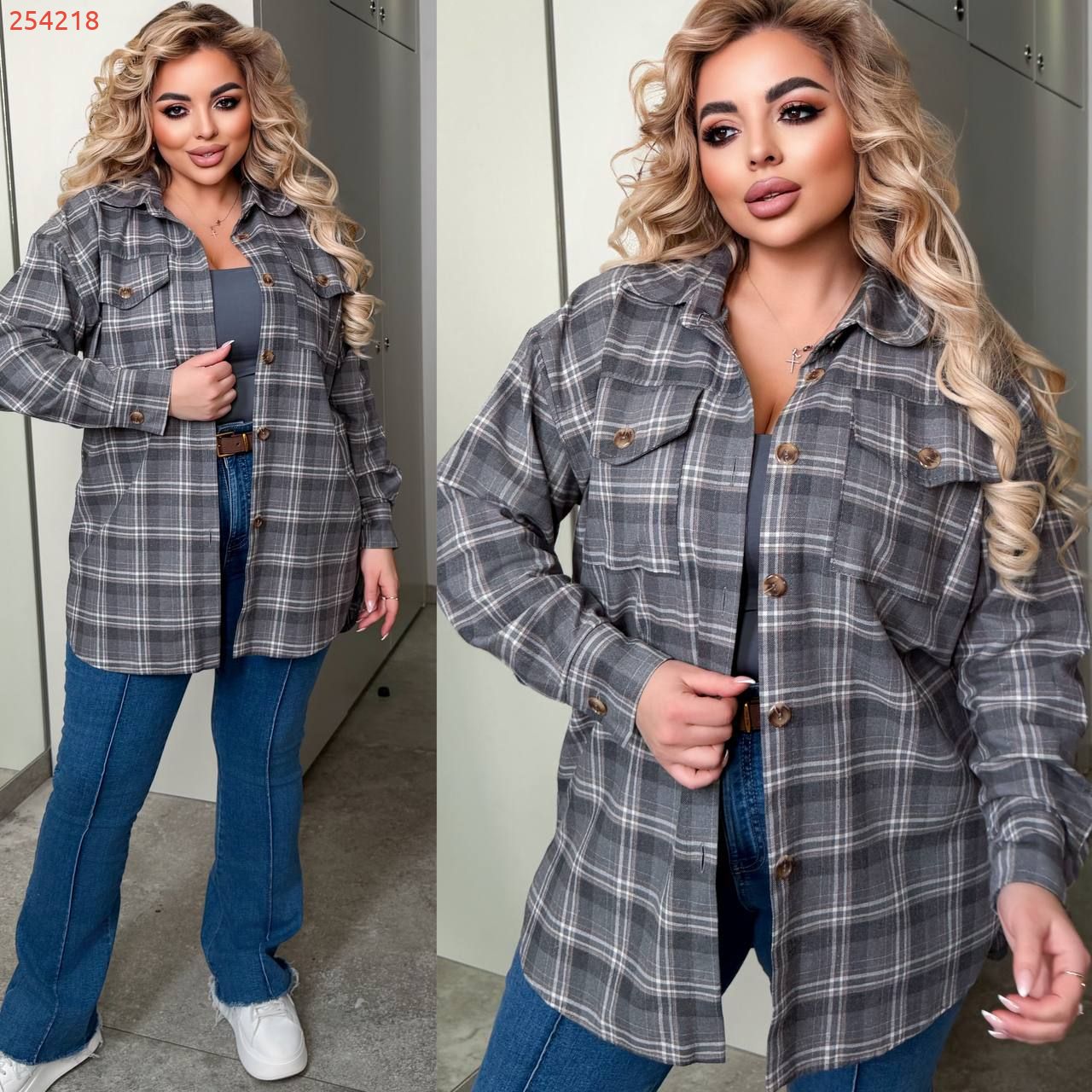 Комфортна універсальна сорочка з кишенями на гудзиках, з розрізами з боків. Позаду трохи довше.
