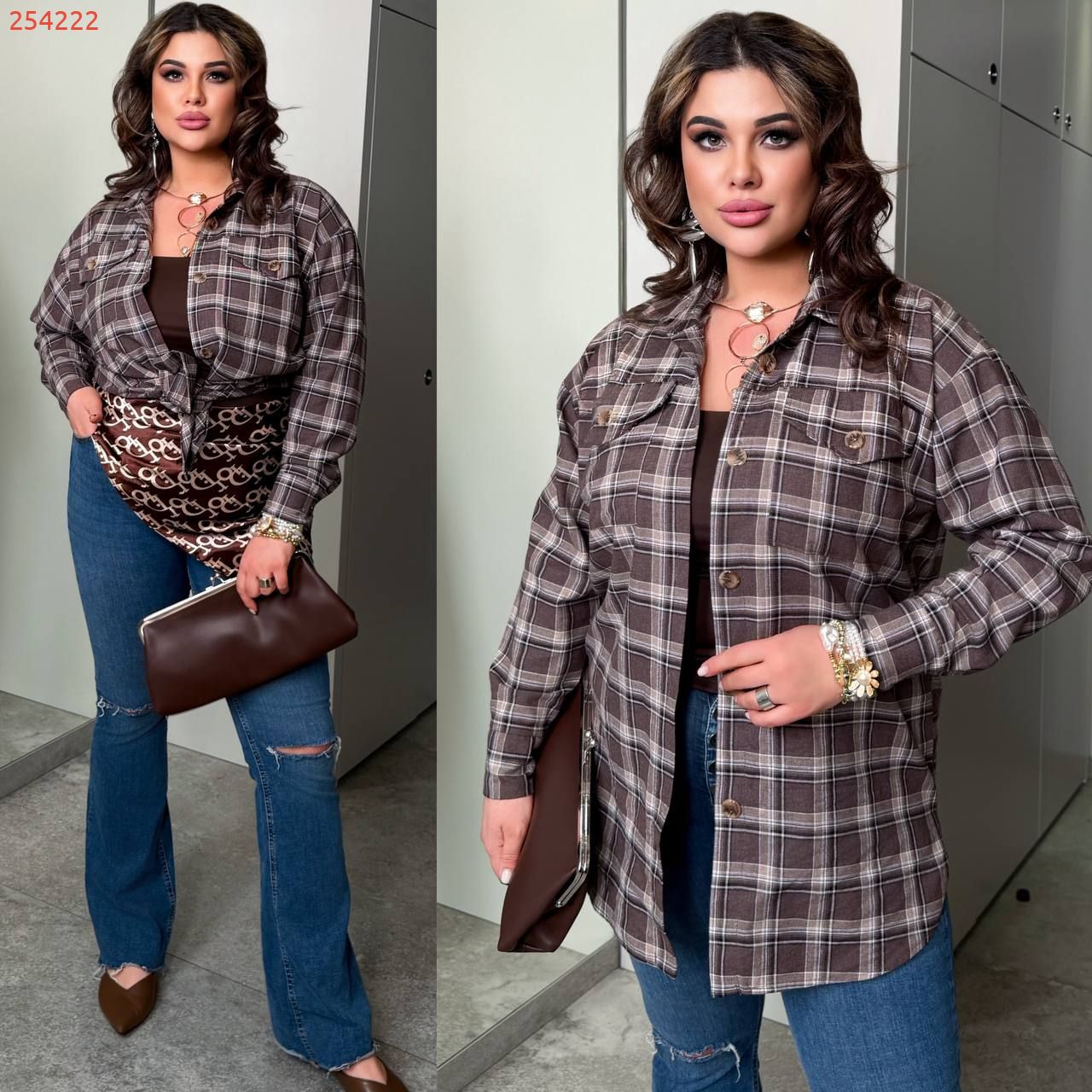 Комфортна універсальна сорочка з кишенями на гудзиках, з розрізами з боків. Позаду трохи довше.