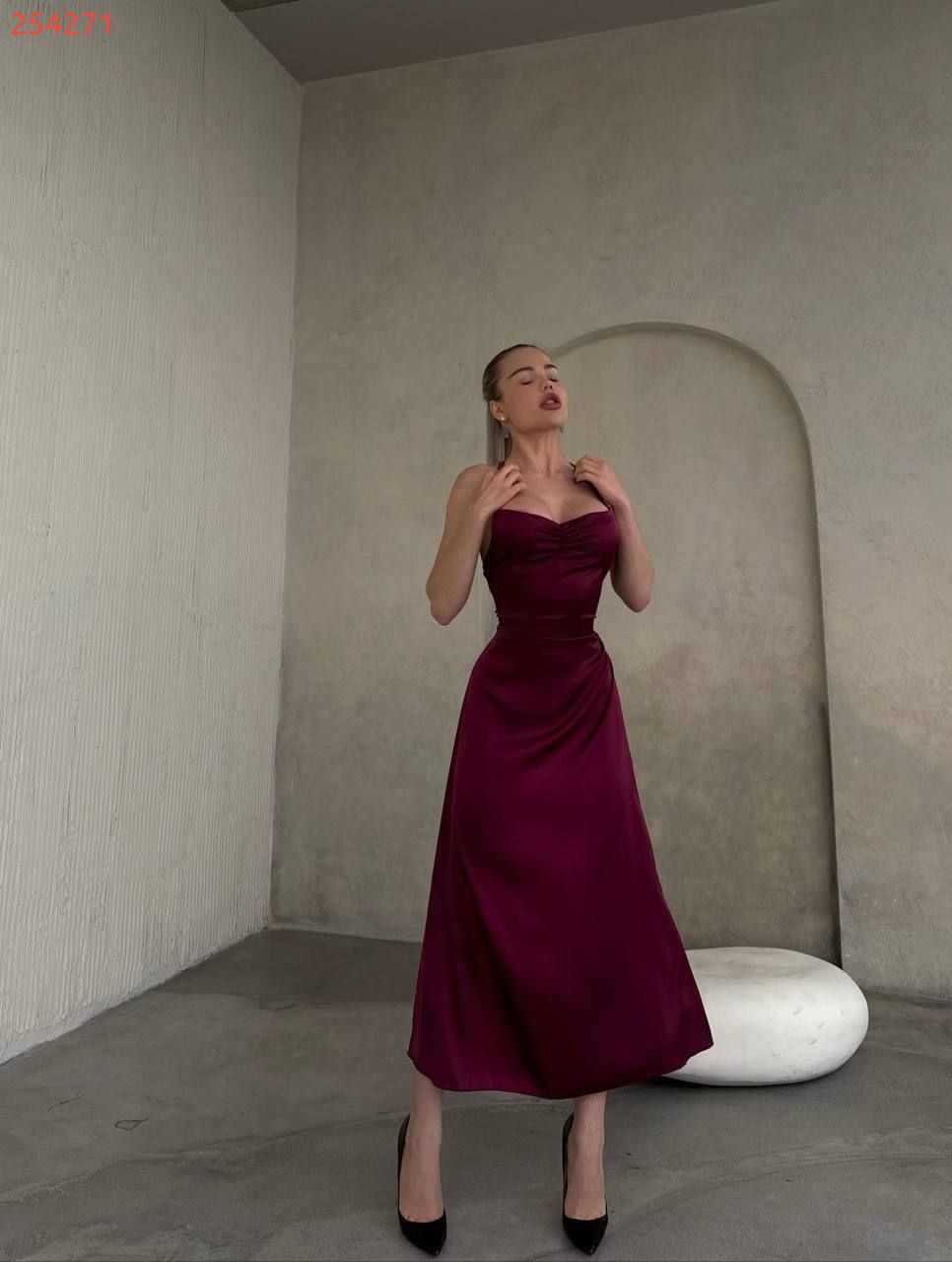 Сукня-комбінація - це втілення елегантності та витонченості. Виготовлена ​​з легких, шовковистих тканин, вона м’яко облягає тіло, створюючи спокусливий та жіночний силует. Завдяки своєму мінімалістичному дизайну, ця сукня є універсальним елементом гардеробу, який можна легко адаптувати до різних подій.