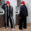 Довжина штанів : 106 см Штани з високою посадкою , пояс на гумці , ломпаси , бічні кишені , низ на фіксаторі . Кофта прямого покрою , з ломпасом , на блискавці , з капюшоном низ на фіксаторі .