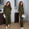 Довжина штанів : 106 см. Широкі штани з високою посадкою , пояс на гумці , бічні кишені . Кофта прямого покрою з бічними розрізами .