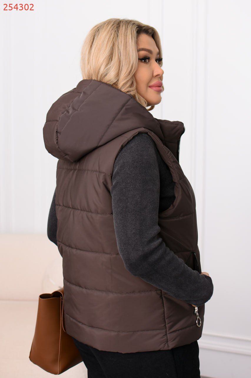 Комфортна жилетка, виконана з якісної плащівки Еммі на підкладці, утеплена силіконом (150 г/м²). Має вшитий капюшон. Стьобана текстура забезпечує рівномірний розподіл наповнювача навіть після прання. Ідеальний вибір для прохолодної погоди!