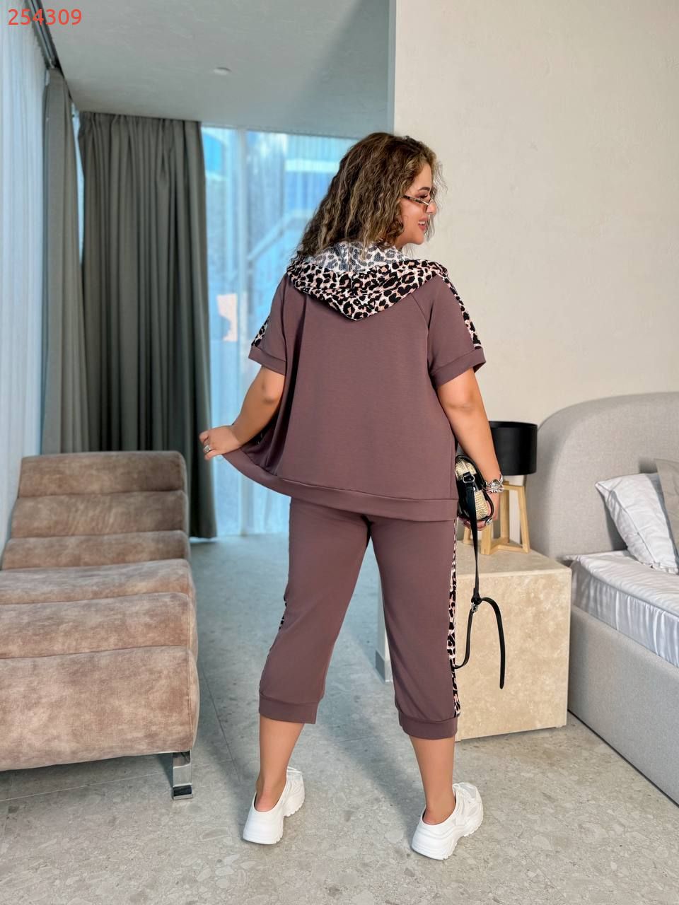 Кофта вільного силуету з капюшоном , кишені листочки. Прикрашений вставками з леопарда і обструкції. Рукав на манжеті.