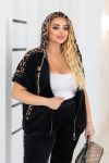 Кофта вільного силуету з капюшоном , кишені листочки. Прикрашений вставками з леопарда і обструкції. Рукав на манжеті.