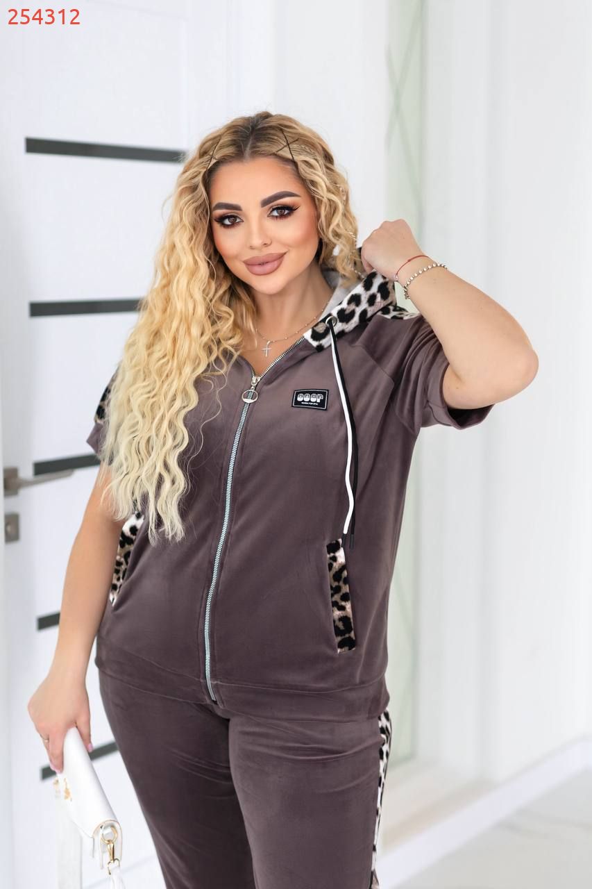 Костюм двійка велюр капучино №254312