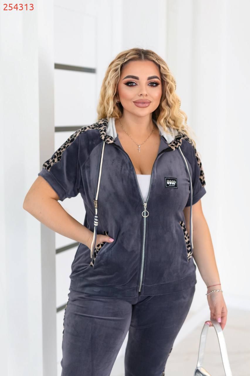 Кофта вільного силуету з капюшоном , кишені листочки. Прикрашений вставками з леопарда і обструкції. Рукав на манжеті.