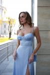 Сукня з ніжного даблшовку з акцентом на декольте - збірка на чашках візуально додає об'єм і підкреслює форму. Ефектний розріз на нозі додає витонченості та легкості. На спині - прихована блискавка та регульована шнурівка з корсетною імітацією для ідеальної посадки по фігурі.