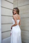 Сукня з ніжного даблшовку з акцентом на декольте - збірка на чашках візуально додає об'єм і підкреслює форму. Ефектний розріз на нозі додає витонченості та легкості. На спині - прихована блискавка та регульована шнурівка з корсетною імітацією для ідеальної посадки по фігурі.