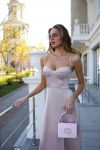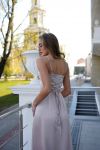 Сукня з ніжного даблшовку з акцентом на декольте - збірка на чашках візуально додає об'єм і підкреслює форму. Ефектний розріз на нозі додає витонченості та легкості. На спині - прихована блискавка та регульована шнурівка з корсетною імітацією для ідеальної посадки по фігурі.