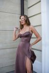 Сукня з ніжного даблшовку з акцентом на декольте - збірка на чашках візуально додає об'єм і підкреслює форму. Ефектний розріз на нозі додає витонченості та легкості. На спині - прихована блискавка та регульована шнурівка з корсетною імітацією для ідеальної посадки по фігурі.