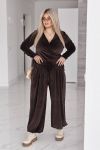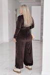 Стильний жіночий костюм у трендових відтінках, що поєднує комфорт і витончену жіночність. Виконаний з м’якого, приємного до тіла велюру з легким благородним блиском, який красиво переливається при русі.