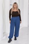 Ці штани поєднують у собі комфорт, продуману конструкцію та сучасну естетику. Вільний прямий силует м’яко лягає по фігурі, не облягаючи, та створює витягнутий, збалансований образ. Еластичний пояс забезпечує зручну посадку по талії без тиску, що робить модель ідеальною для щоденного носіння.