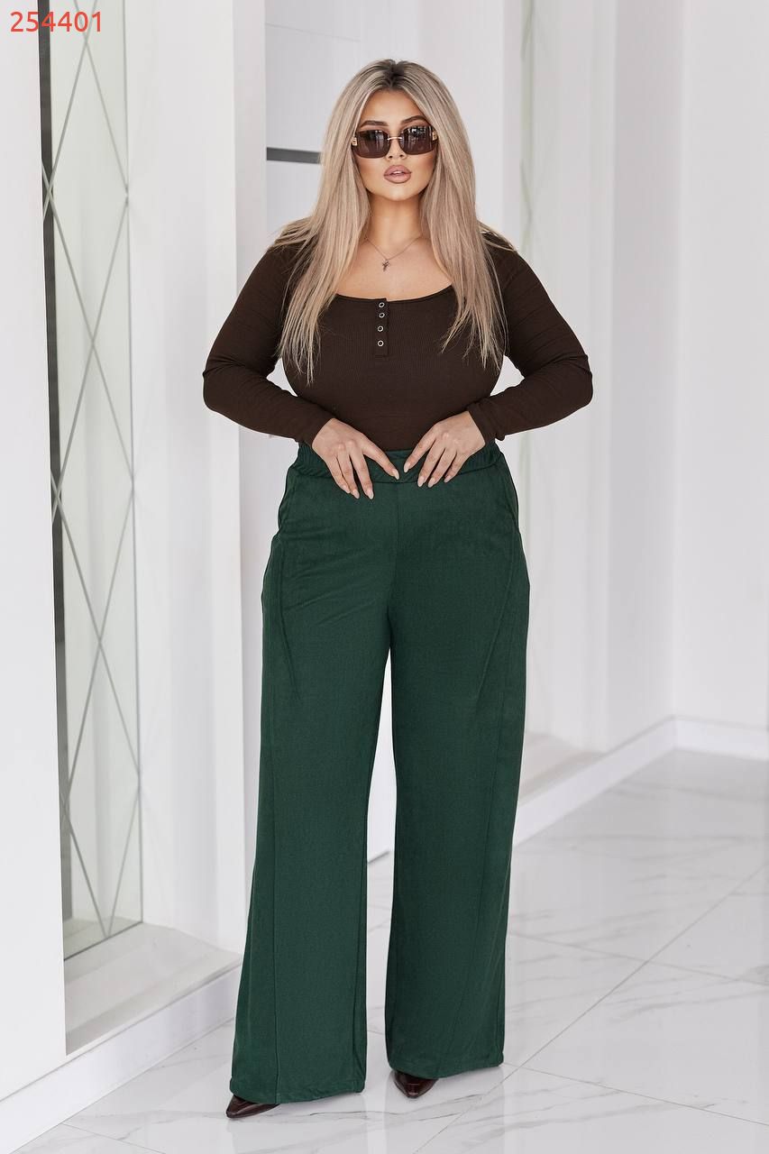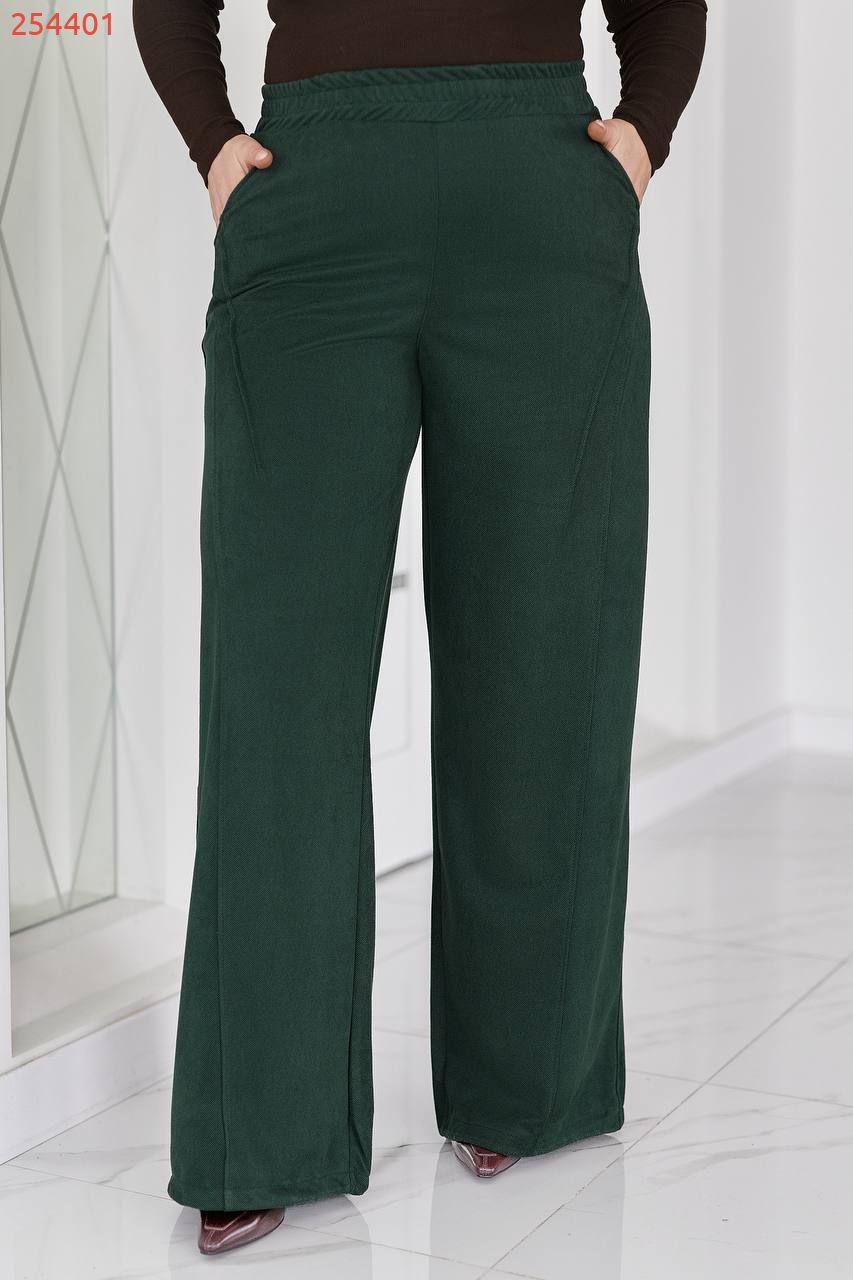Ці штани поєднують у собі комфорт, продуману конструкцію та сучасну естетику. Вільний прямий силует м’яко лягає по фігурі, не облягаючи, та створює витягнутий, збалансований образ. Еластичний пояс забезпечує зручну посадку по талії без тиску, що робить модель ідеальною для щоденного носіння.