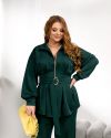 Жіночий костюм, що складається з блузи на блискавці та широких штанів.