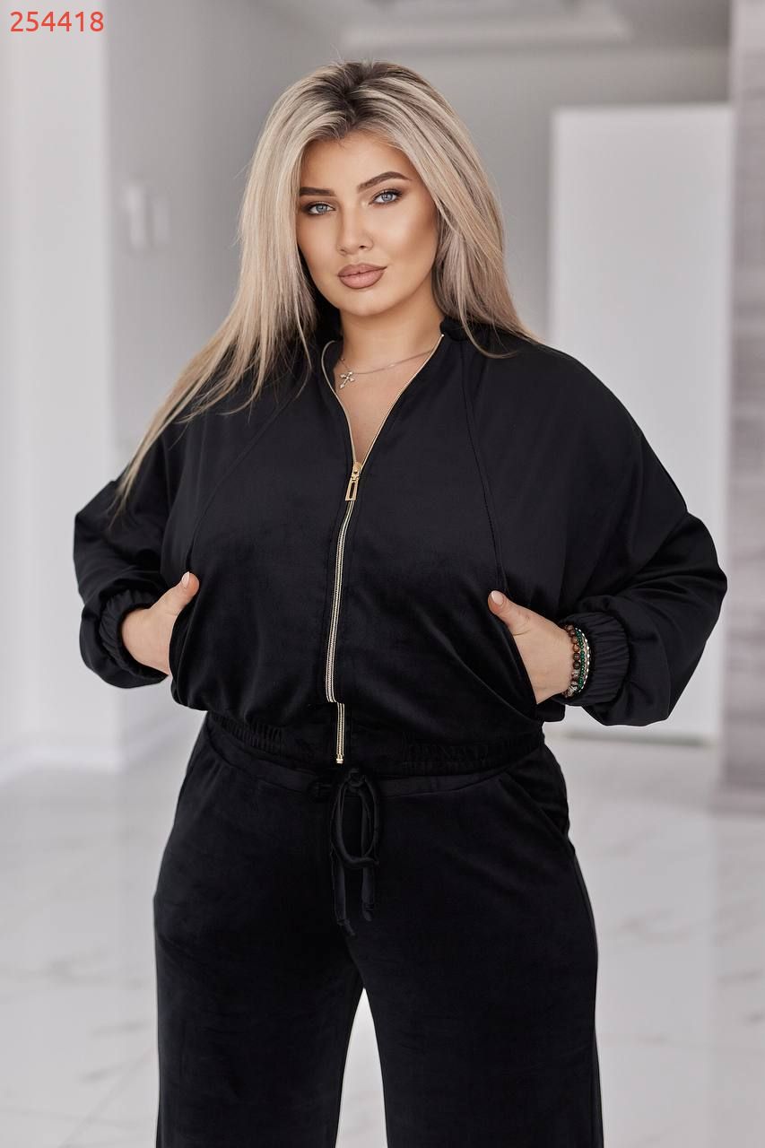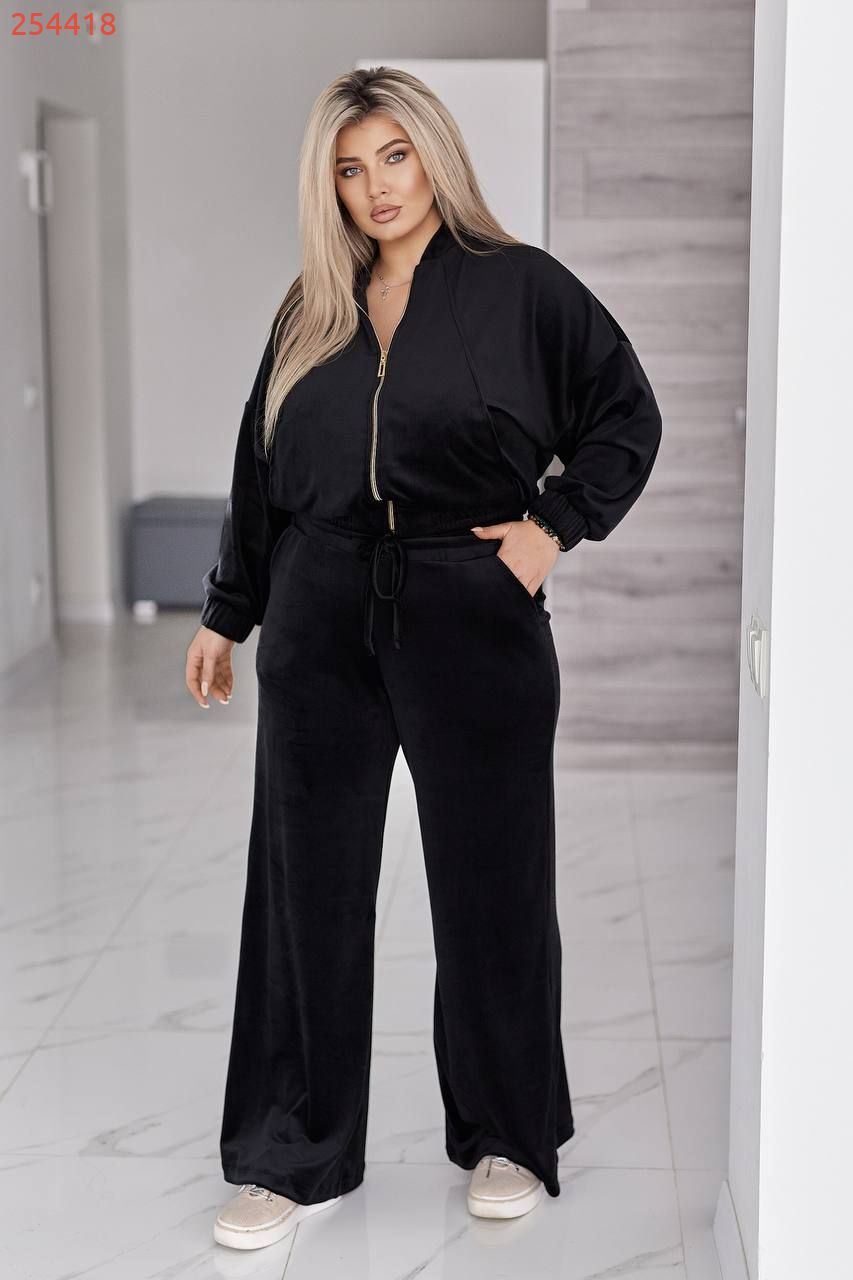 Велюровий оксамитовий костюм чорний №254418