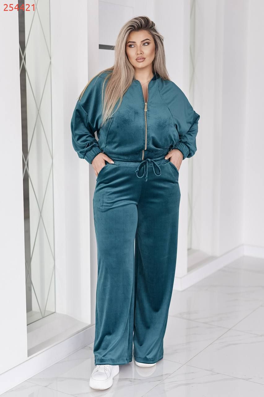 Велюровий оксамитовий костюм смарагдовий №254421