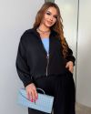 Кофта-бомбер. Вільний крій, спереду понизу мʼякі склади, позаду- на резинці, що дозволяє зробити бажану фіксацію, застібка на блискавку. Спущена лінія плеча, обʼємний рукав із манжетом.