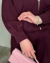 Кофта-бомбер. Вільний крій, спереду понизу мʼякі склади, позаду- на резинці, що дозволяє зробити бажану фіксацію, застібка на блискавку. Спущена лінія плеча, обʼємний рукав із манжетом.