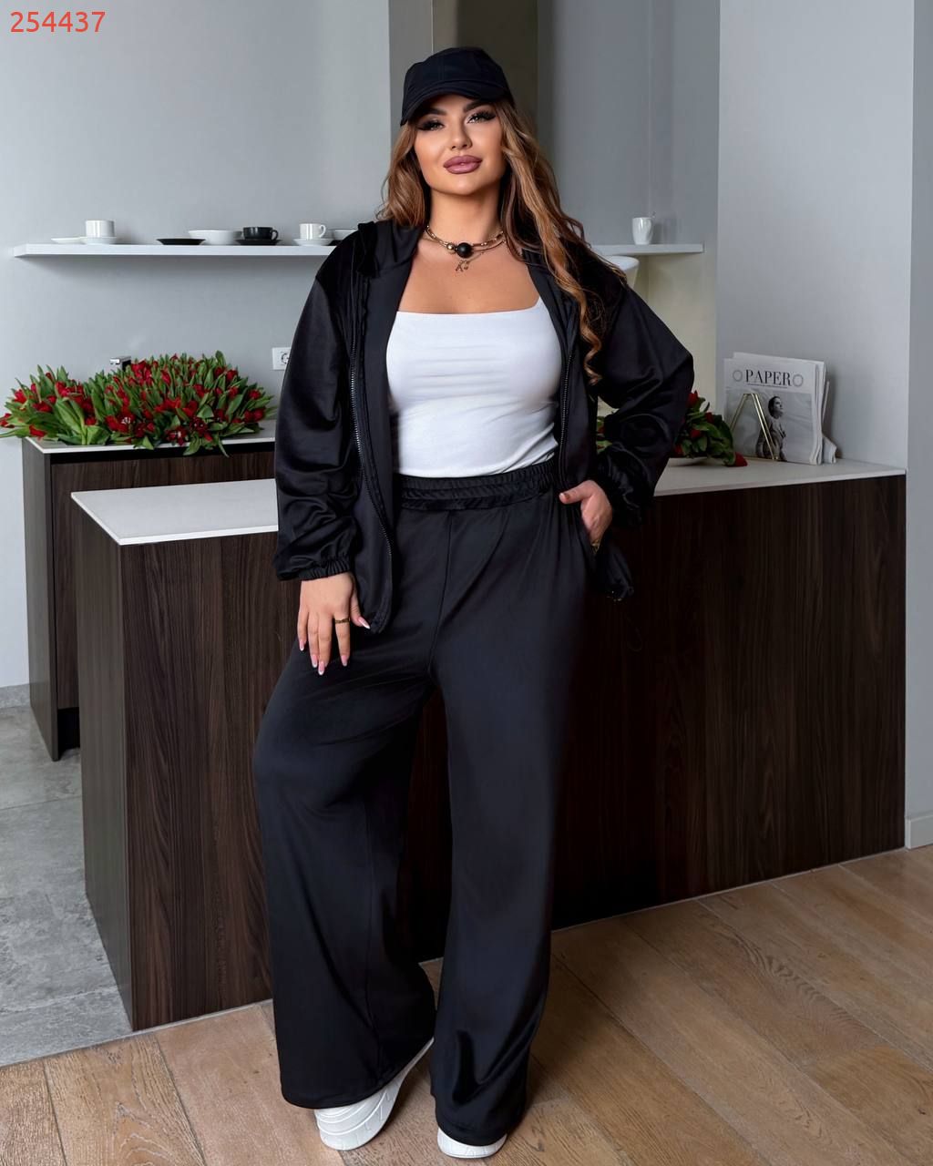 Велюровий спорт костюм чорний №254437