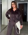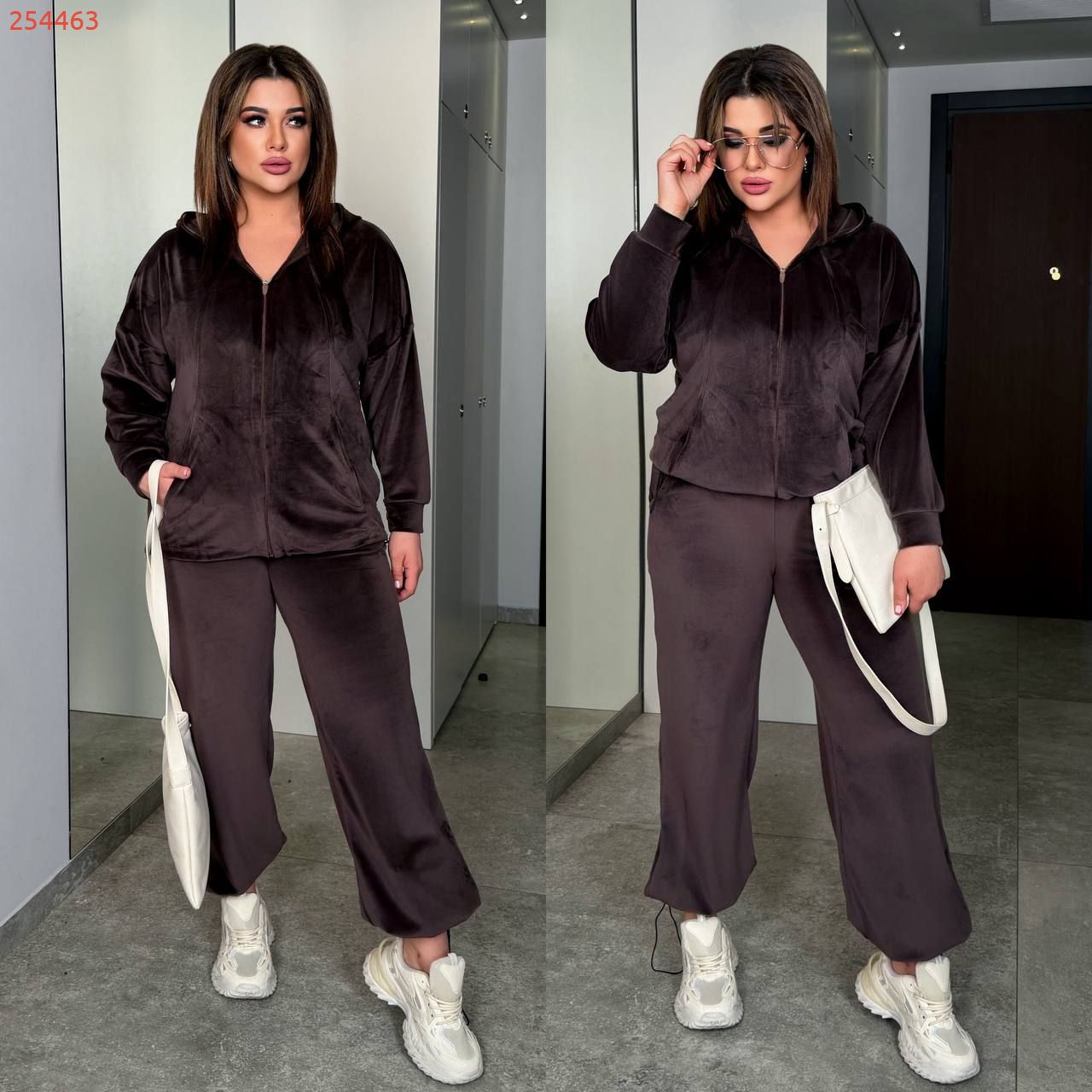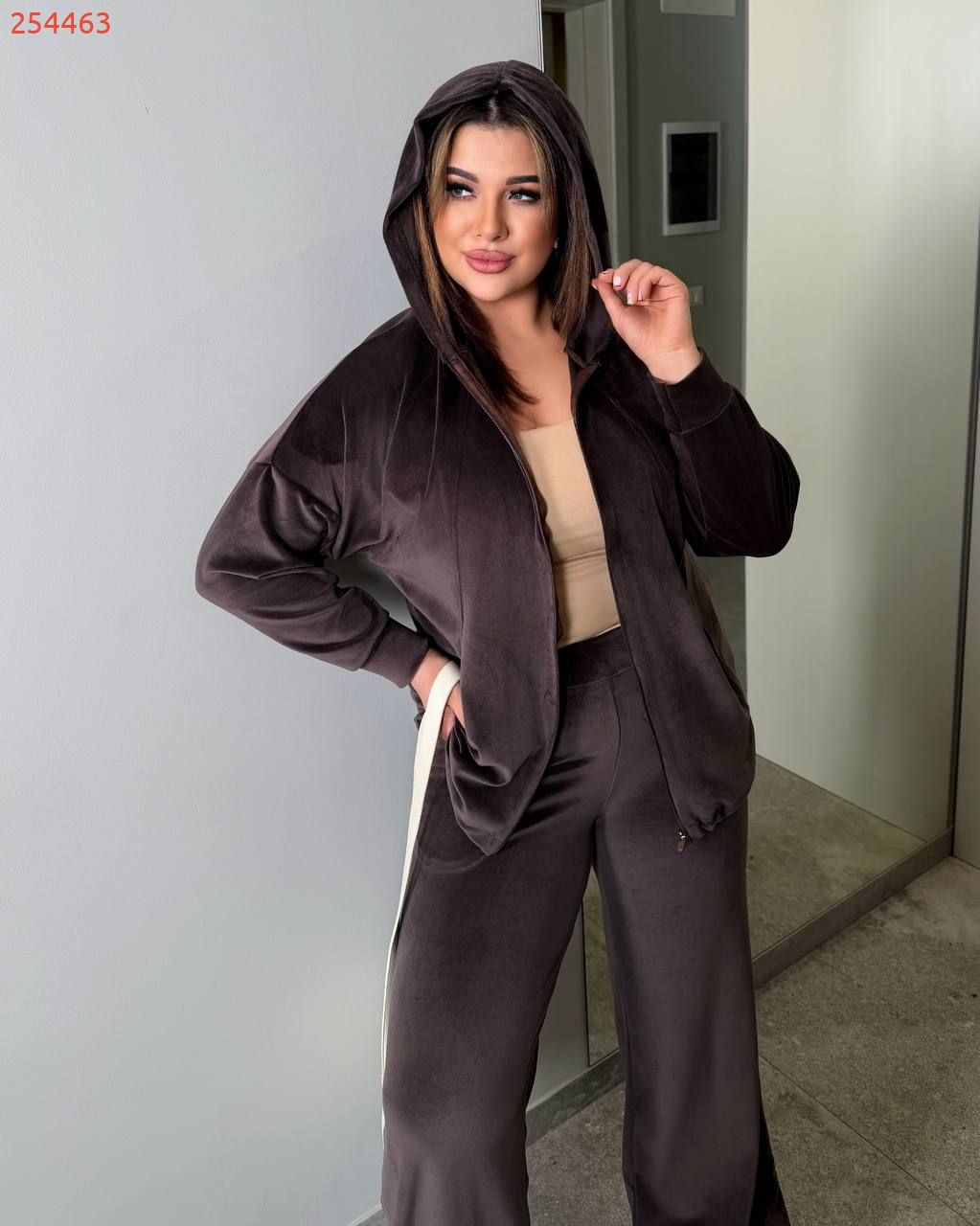 Трендовий костюм з велюру шоколад №254463