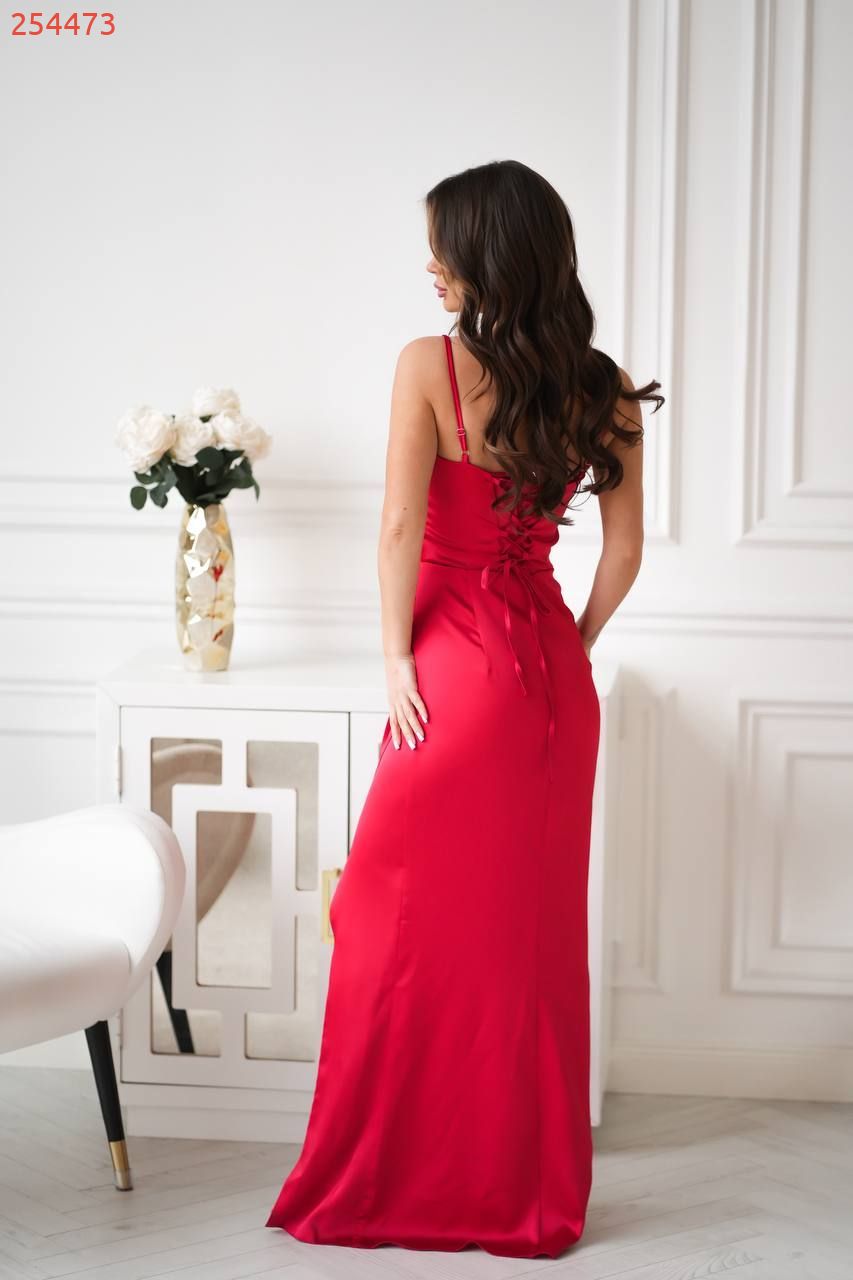 Атласна сукня з корсетною спинкою червона №254473
