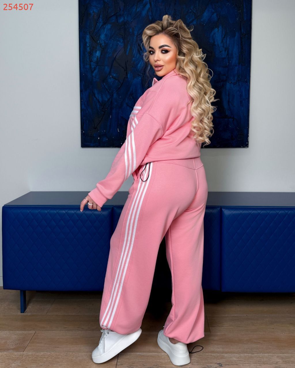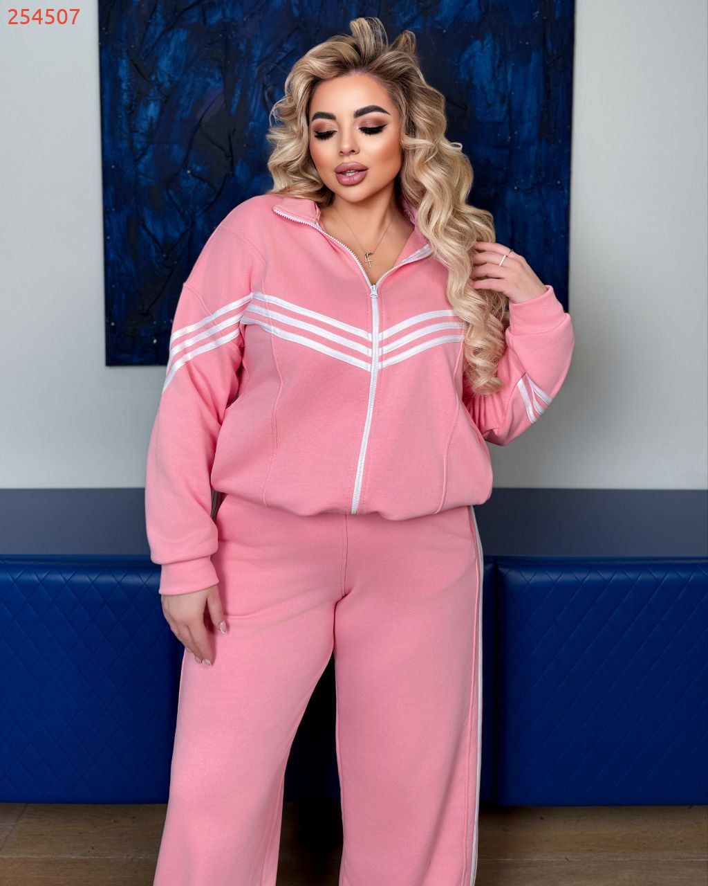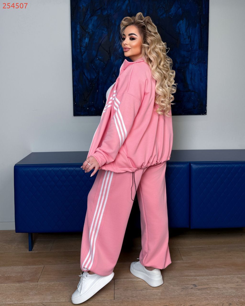 Кофта має дві кишені, по низу куліска. Штанці - висока посадка , низ з регулюванням