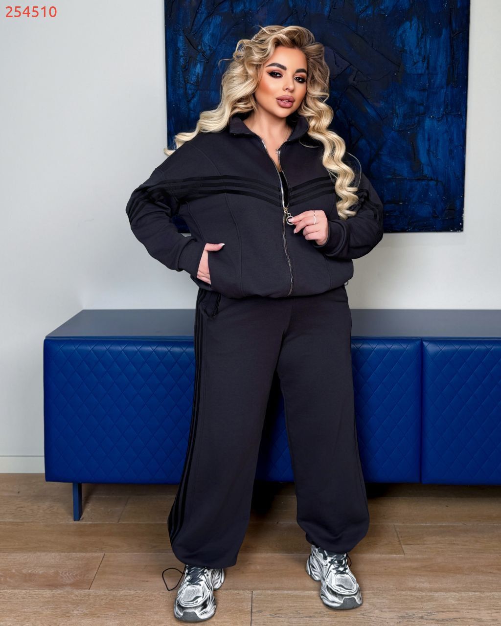 Кофта має дві кишені, по низу куліска. Штанці - висока посадка , низ з регулюванням