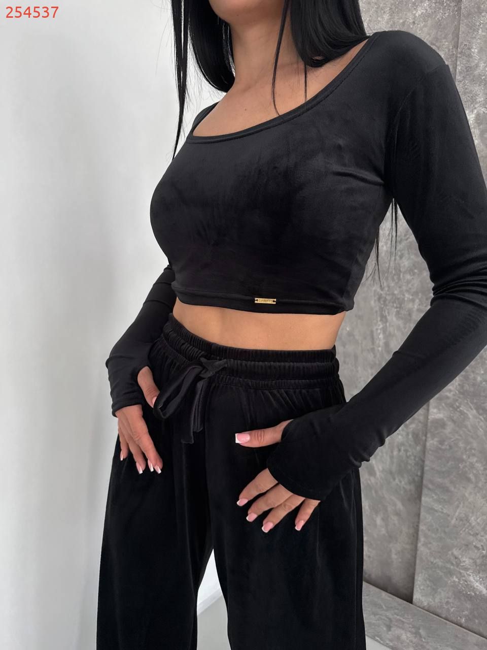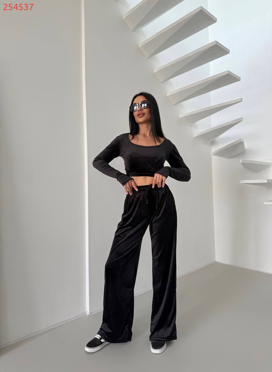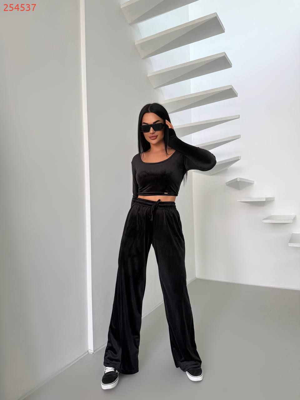 Стильний практичний костюмчик з велюру. Приємна мʼяка тканина, тягнеться. На костюмі є пришивна, як на фото. Також лонг йде з розрізом на пальчику. Штани йдуть вільні, на резинці в талії та шнурочком.