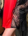 Халат короткий з поясом, з довгим рукавом, виконаний з натурального мережива с купоном по низу халата та низу рукава.