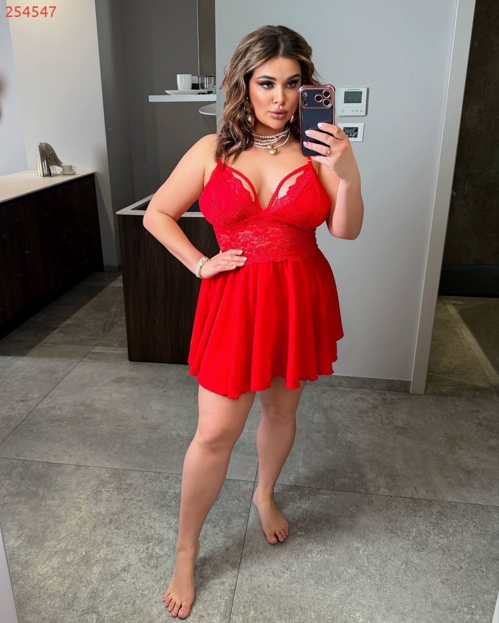 Нічна сорочка, гіпюровий ліф червоний №254547