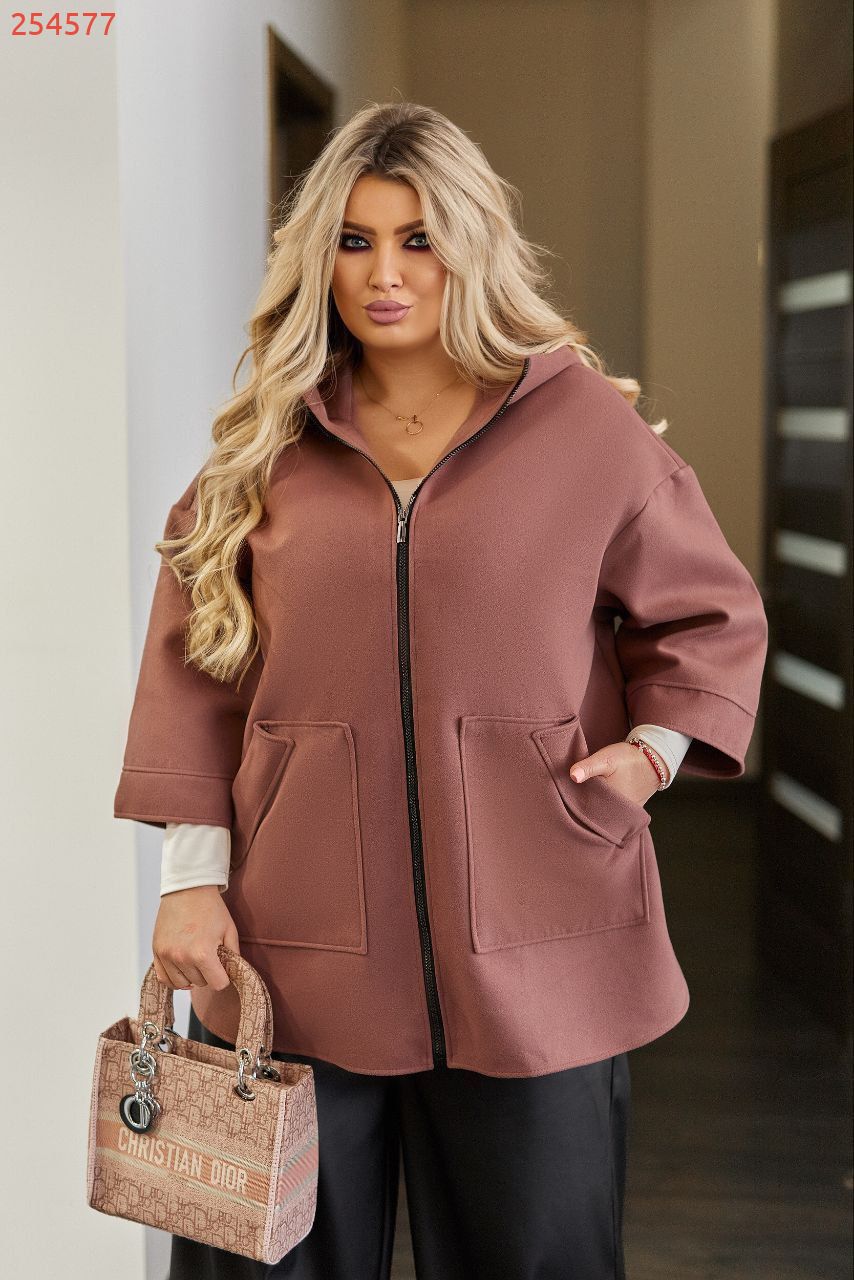 Додаткові характеристики: Неймовірно стильне пальто , комфортне із якісної двосторонньої тканини має прямий вільний силует та капюшон , застібається на блискавку з двома накладними кишенями, рукав вільний довжина 3/4